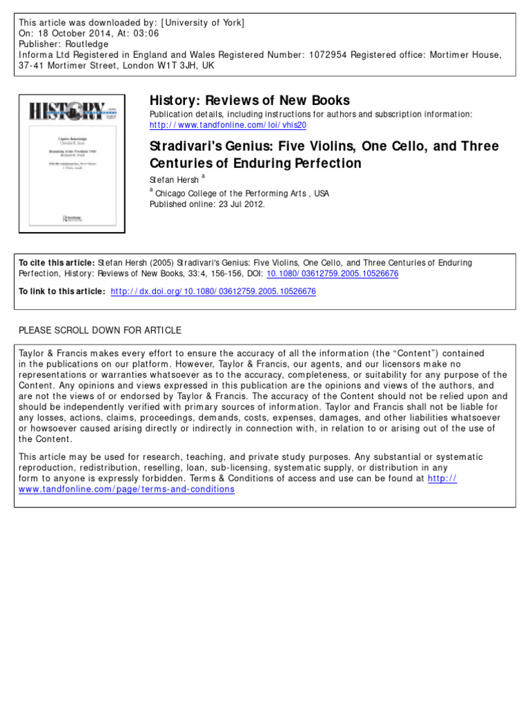 Stradivaris Genius Five Violins One Cell PDF Philosophy