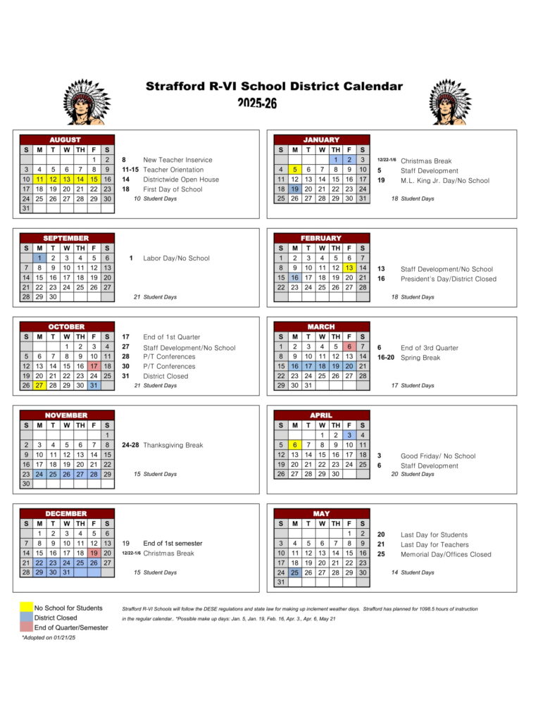 Strafford R VI School District Calendar 25 26 Revised PDF EduCounty