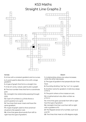 Mastering Maths Crossword Puzzles KS3 Straight Line Graphs