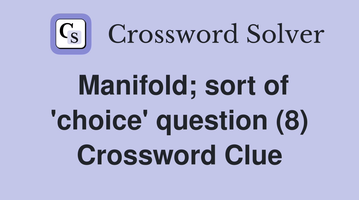 Manifold sort of #39 choice #39 question (8) Crossword Clue Answers