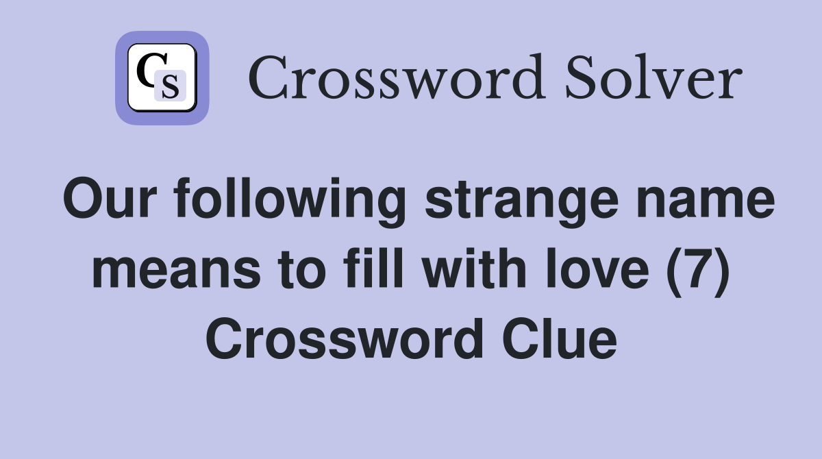 Our following strange name means to fill with love (7) Crossword Clue