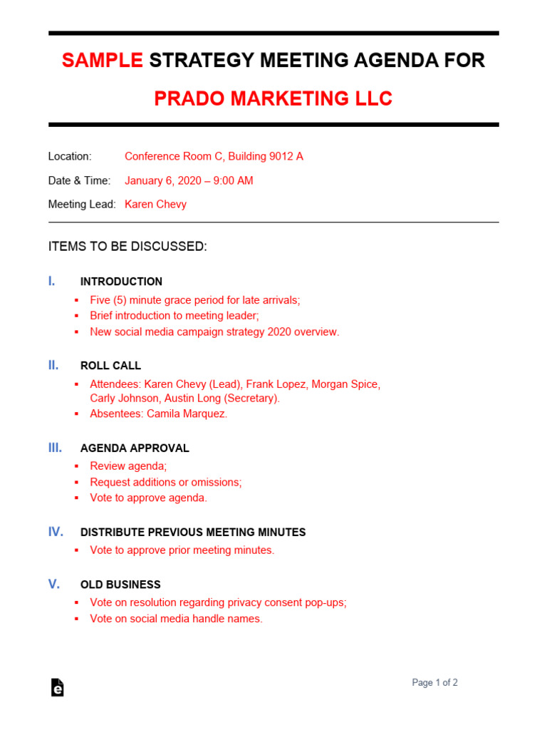 Free Strategy Meeting Agenda Template PDF Word eForms