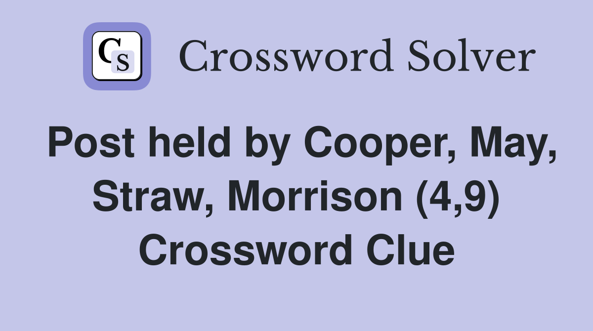 Post held by Cooper May Straw Morrison (4 9) Crossword Clue