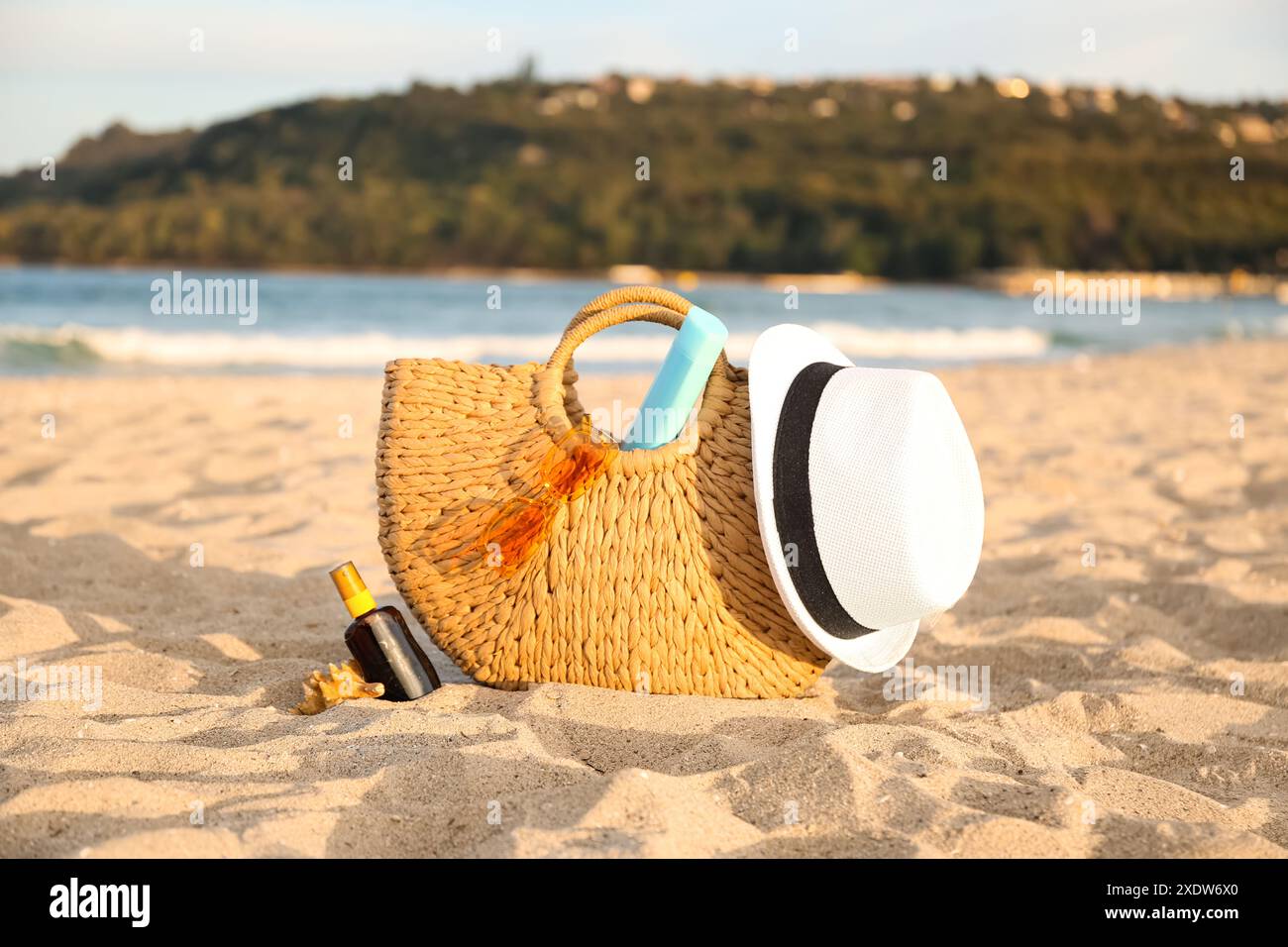 Straw hat bag sunscreen hi res stock photography and images Alamy