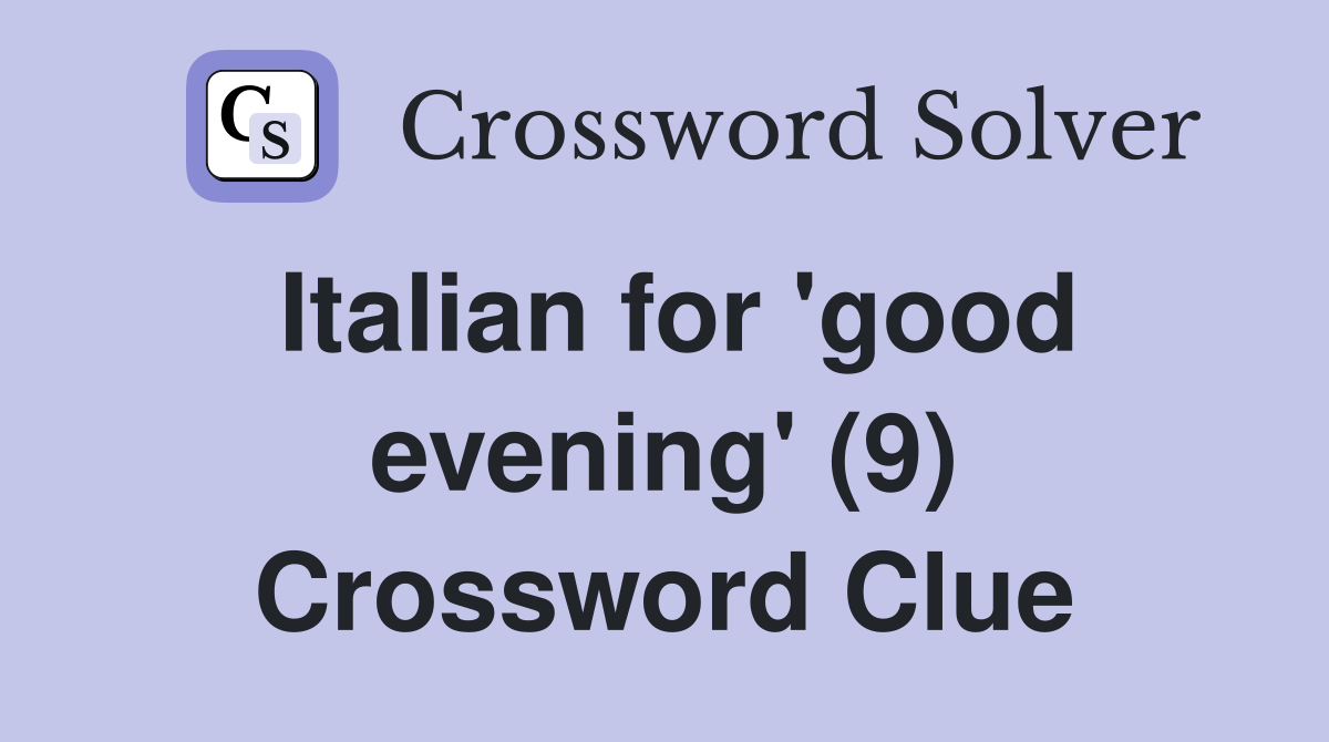 Italian for #39 good evening #39 (9) Crossword Clue Answers Crossword Solver