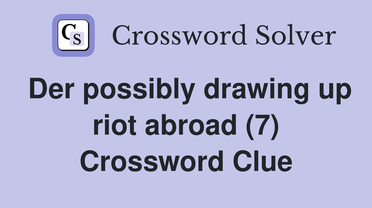 Der possibly drawing up riot abroad (7) Crossword Clue Answers