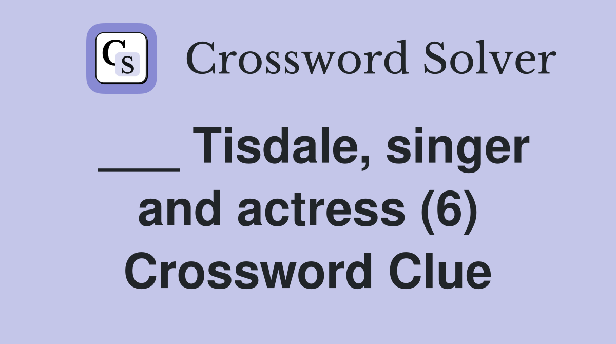 Tisdale singer and actress (6) Crossword Clue Answers Crossword Solver