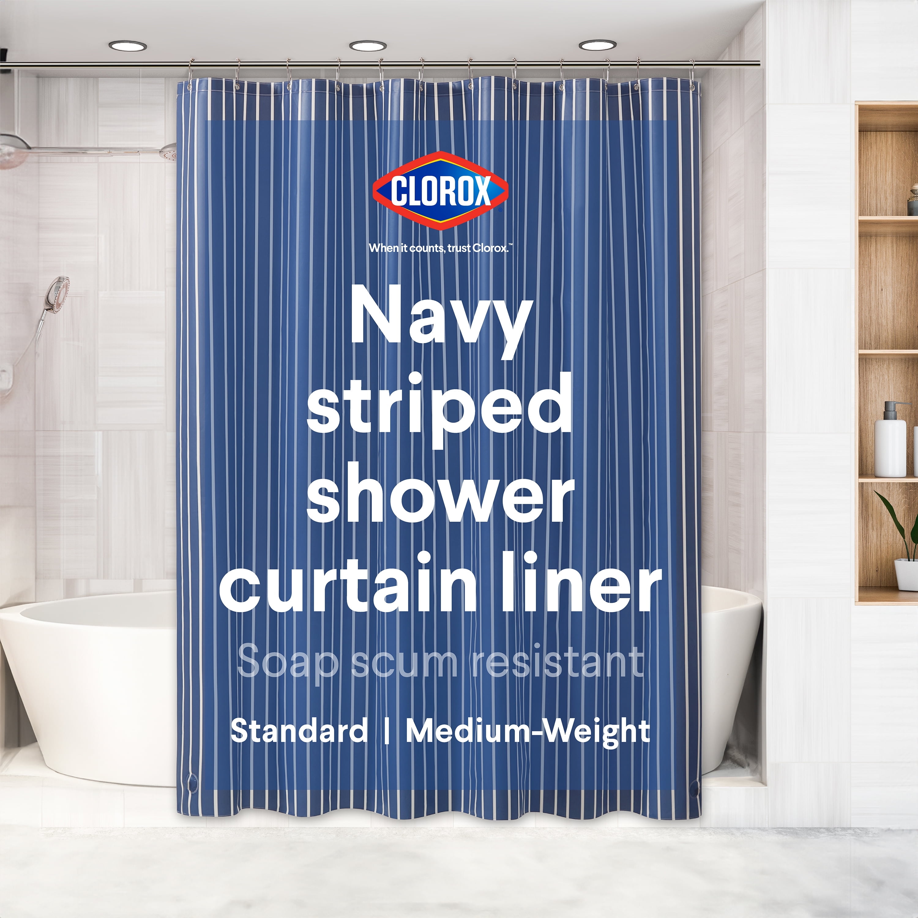 Clorox Shower Curtain Liner Striped Waterproof 6g PEVA for Bathroom