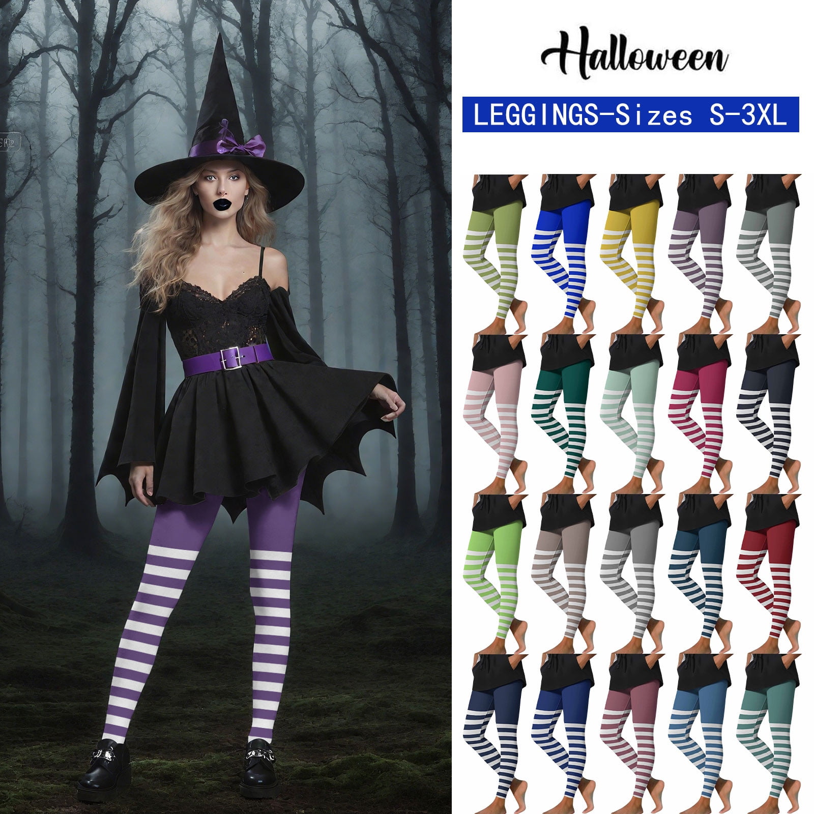 Dazajoo Halloween Witch Striped Leggings for Women High Waisted Full
