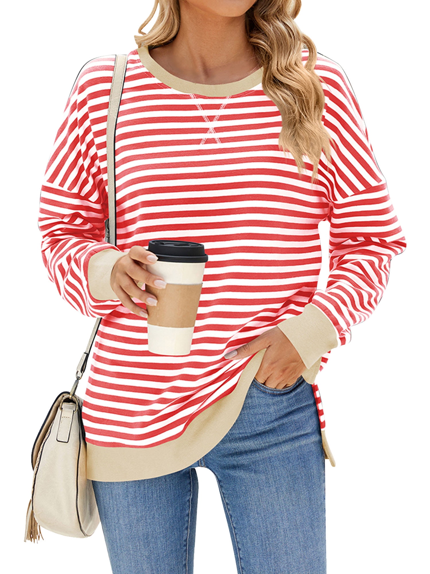 DUMUIELD Womens Tops Striped Long Sleeve T Shirts Crewneck Lightweight
