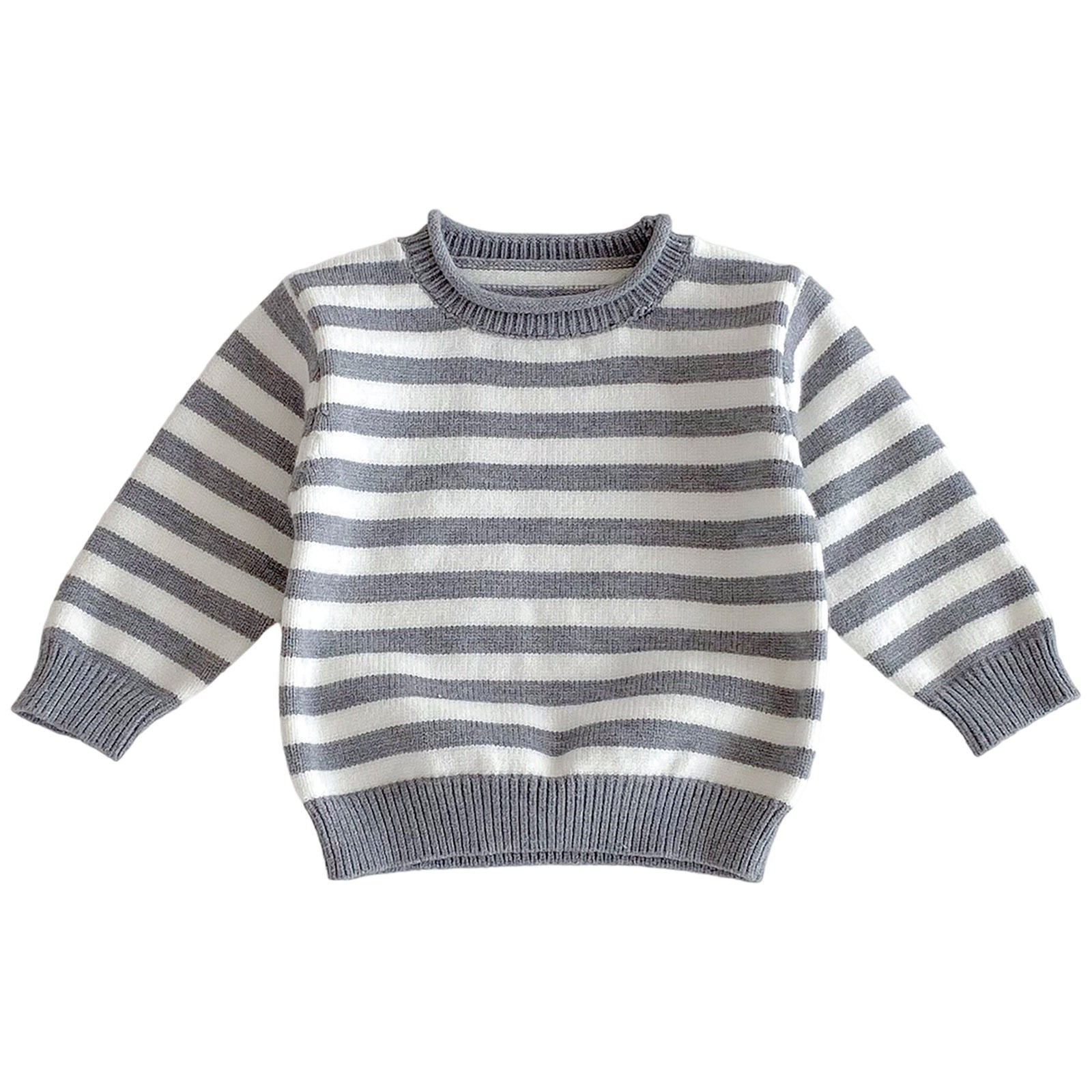 Kiijoy Toddler Girls Striped Casual Sweater Knit Long Sleeve Crew Neck