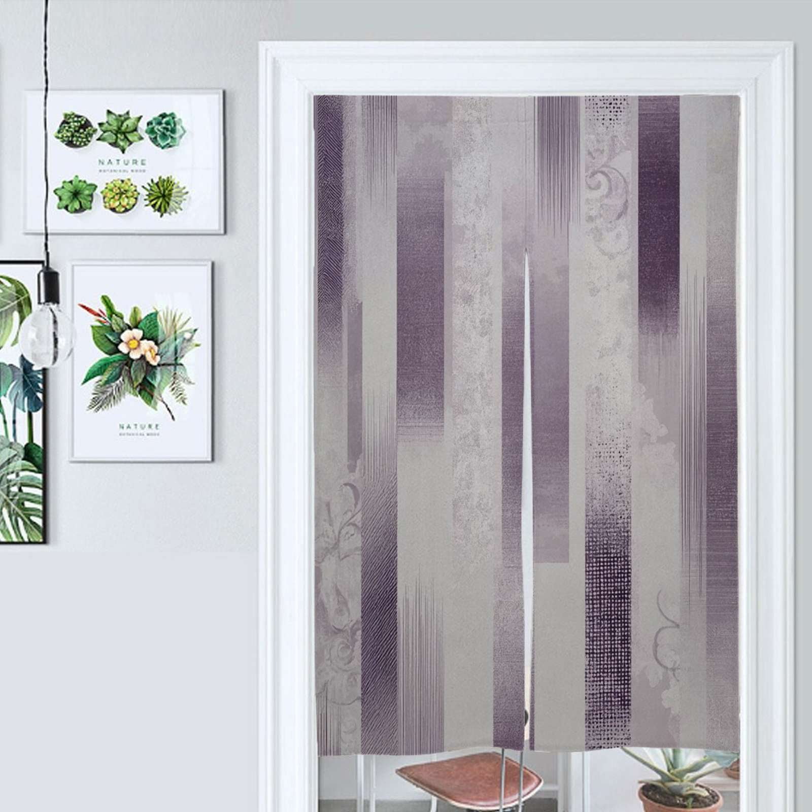 Lavender Vertical Striped Pattern Door Curtain Nordic Living Room