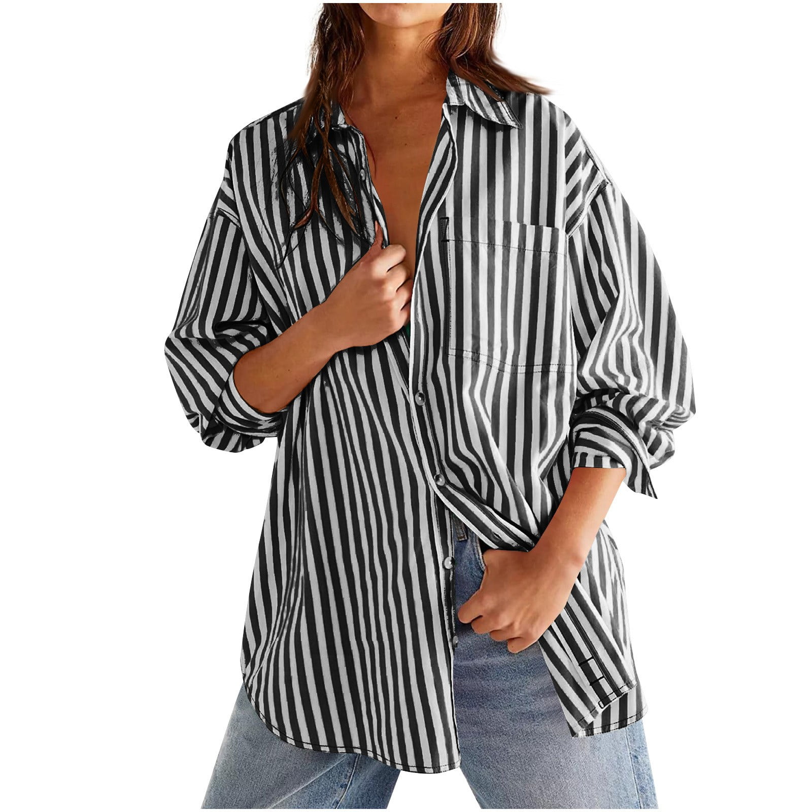 Womens 2025 Oversized Striped Button Down Shirts Boyfriend Long Sleeve