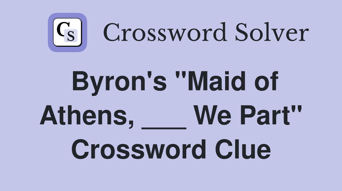 Byron #39 s quot Maid of Athens We Part quot Crossword Clue Answers
