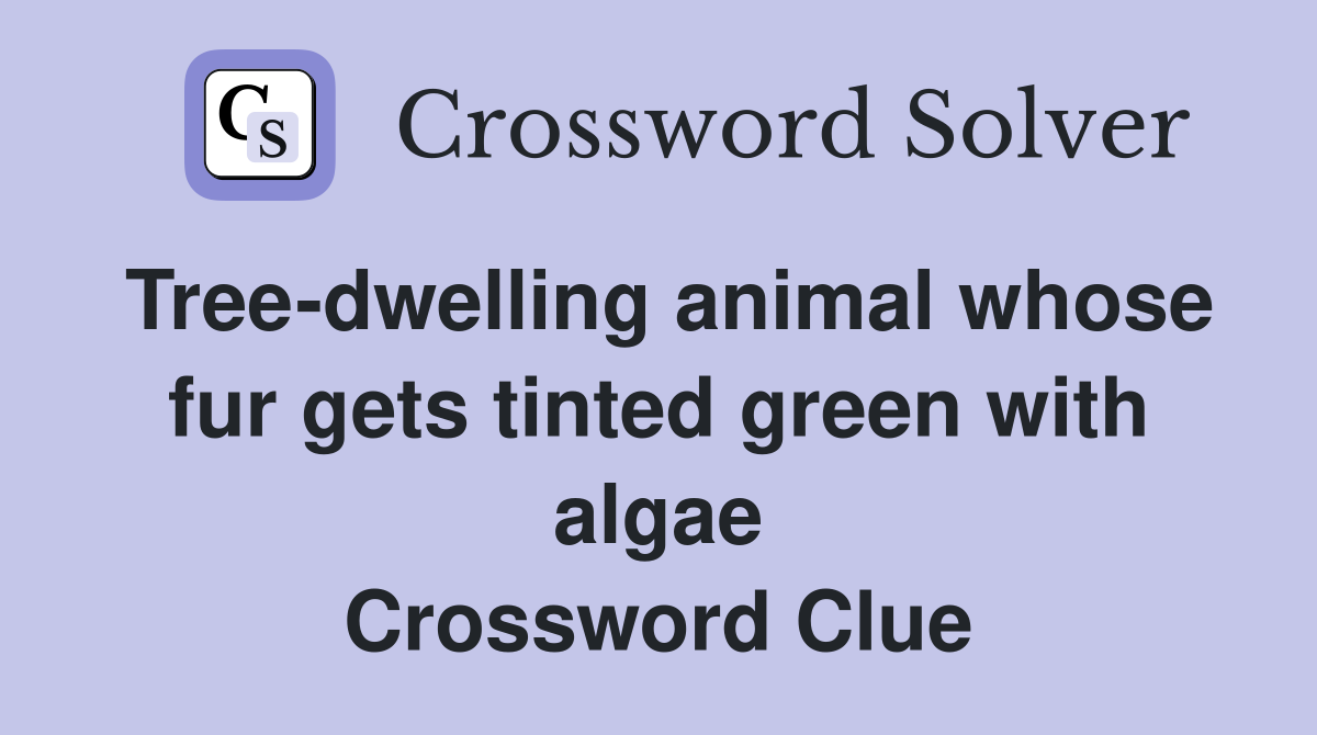 Tree dwelling animal whose fur gets tinted green with algae Crossword