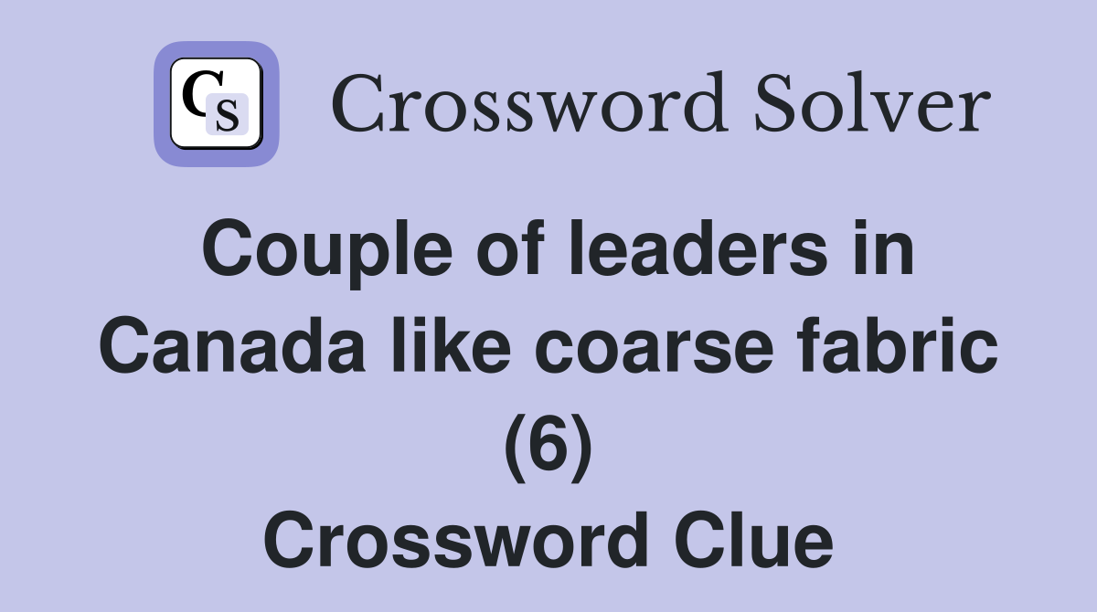 Couple of leaders in Canada like coarse fabric (6) Crossword Clue