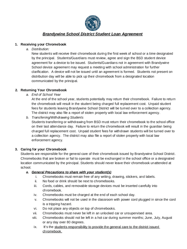 Brandywine School District Student Loan Agreement Doc Template pdfFiller