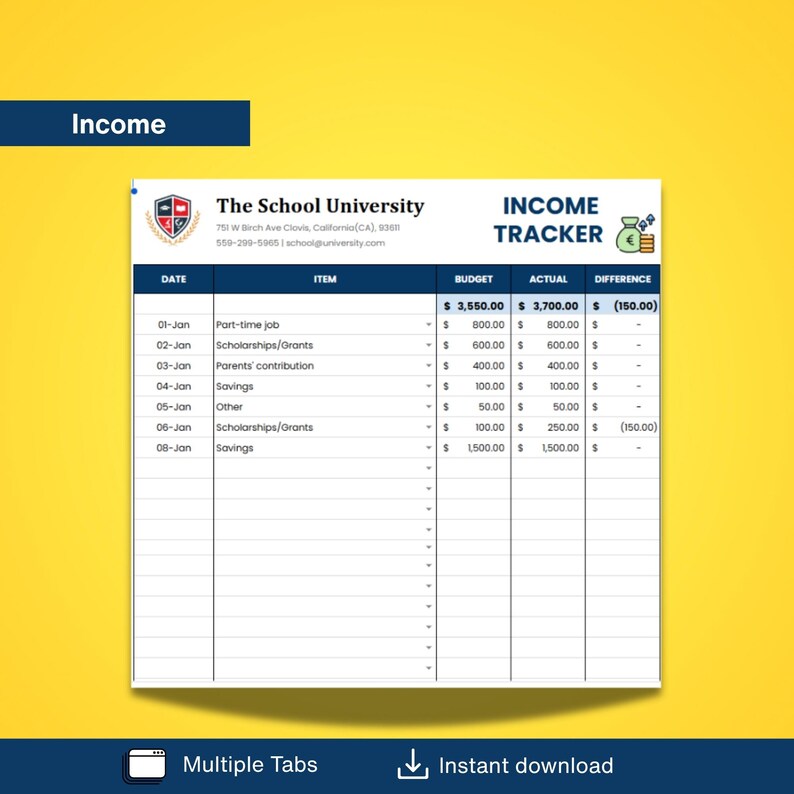 Student Budget Calculator Excel Google Sheets : College University