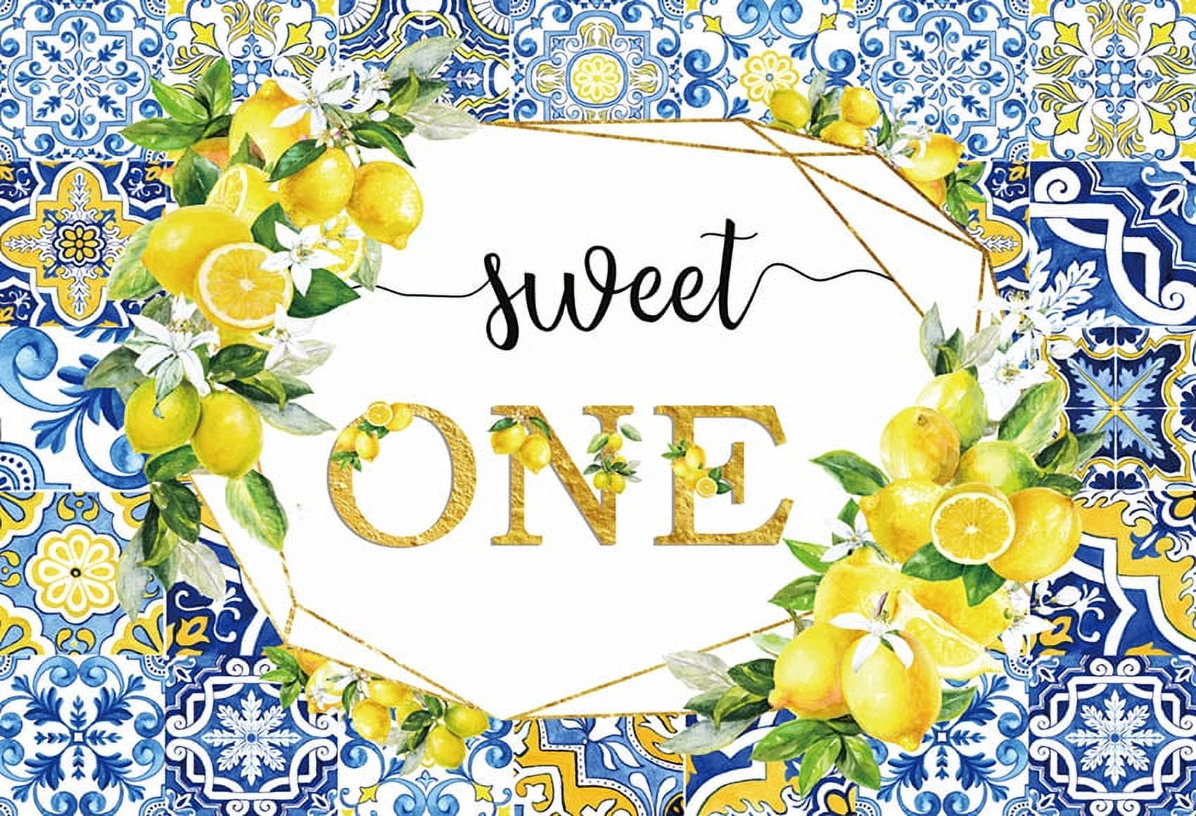 Blue Tile Floral Print Lemon Baby Shower Kids Birthday Party Wedding r