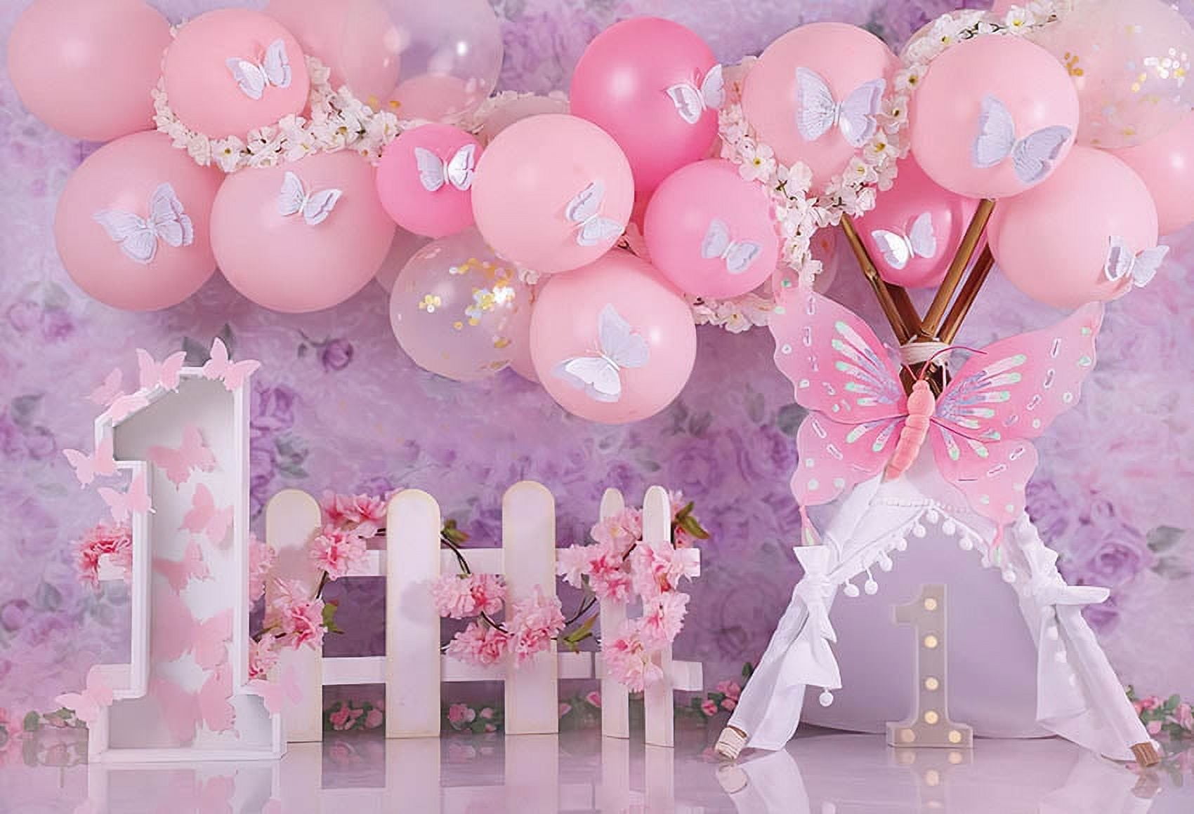 3D Arch Balloon Pink Flowers Kids Birthday Party Cake Smash Portrait r
