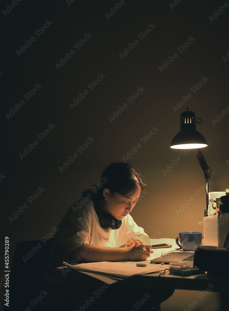 Girl Study At Night Stock Photo Adobe Stock