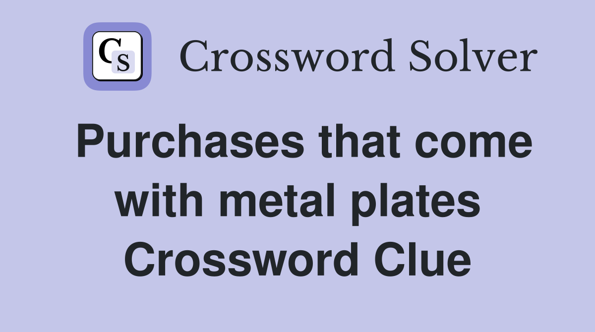 Purchases that come with metal plates Crossword Clue Answers