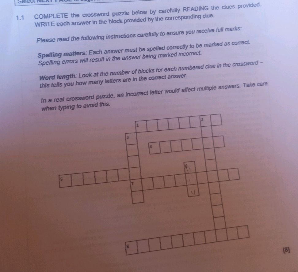 1 1 COMPLETE the crossword puzzle below by StudyX