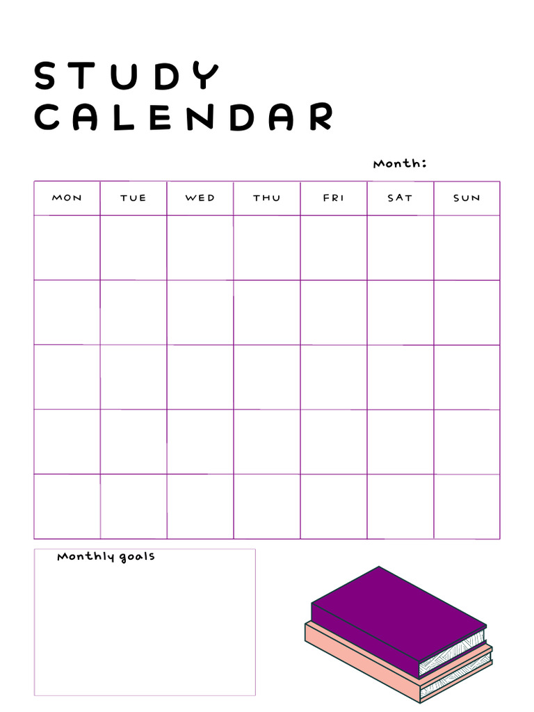 Study Calendar Template Instant Download