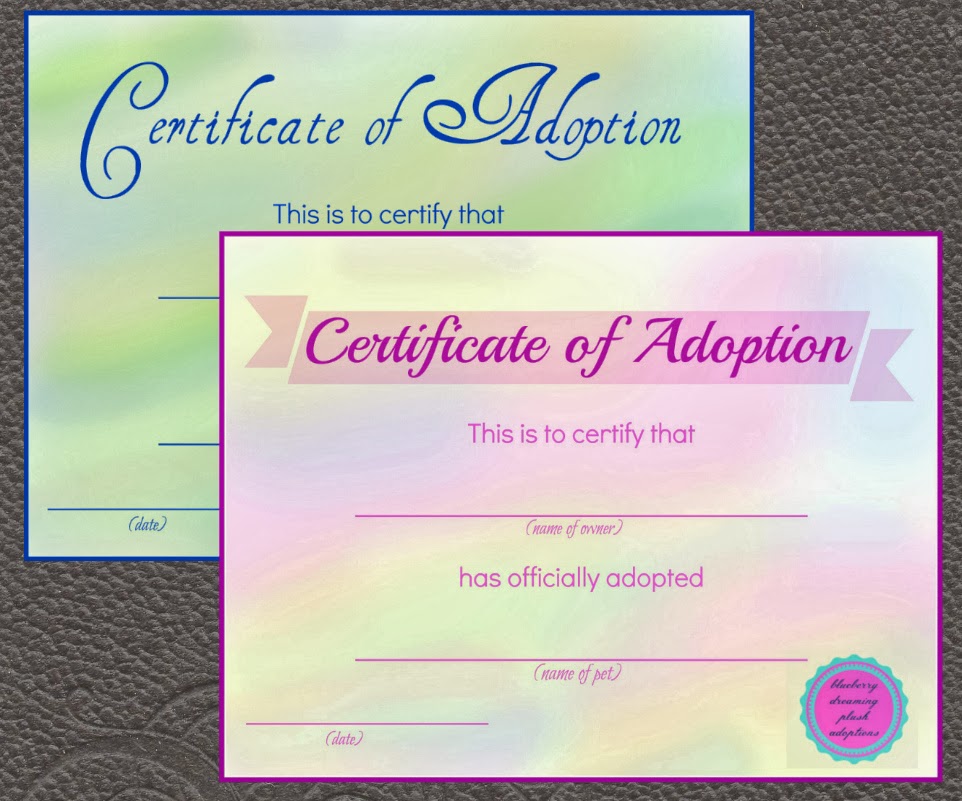 Blueberry Dreaming: Printable Stuffed Animal Adoption Certificates