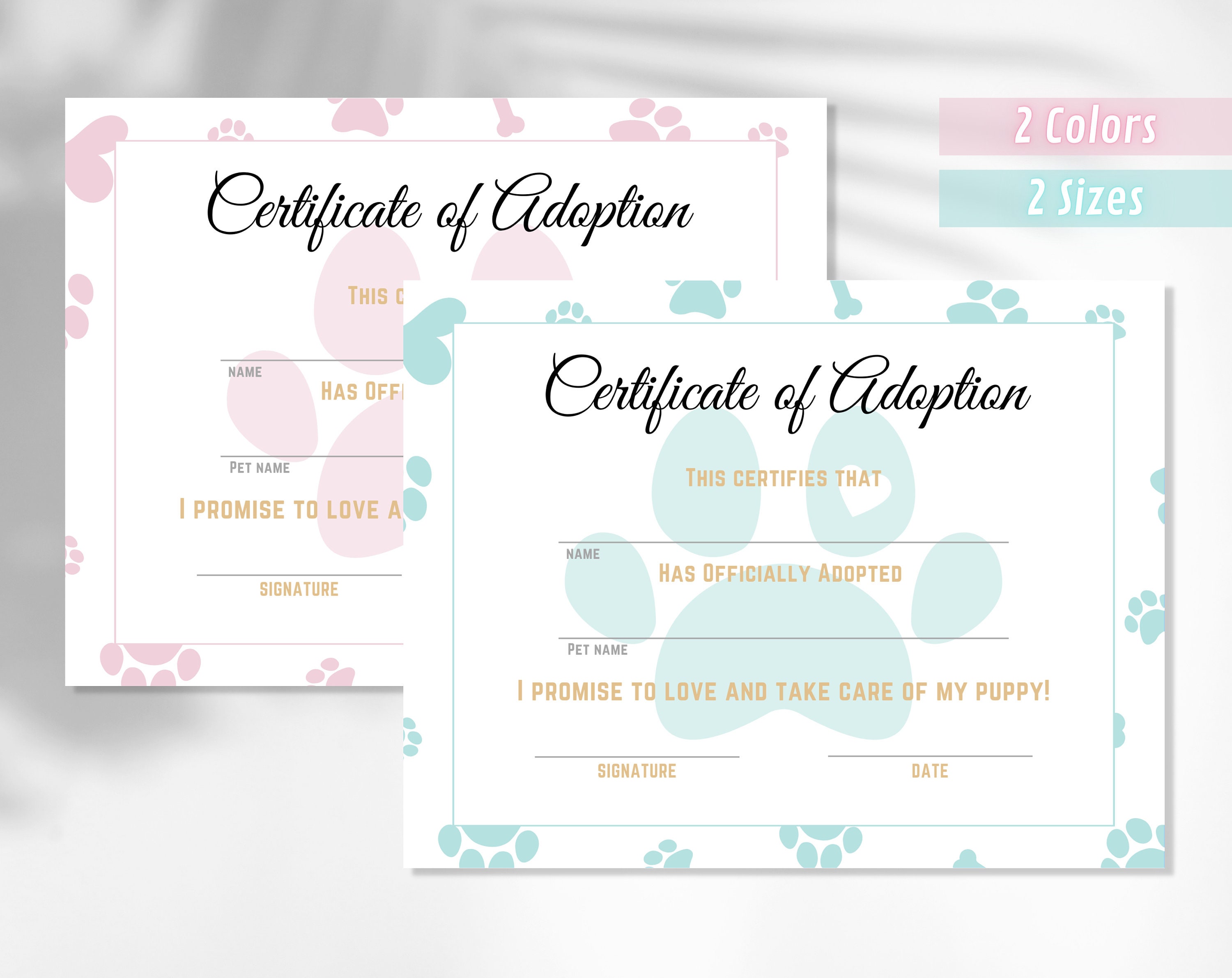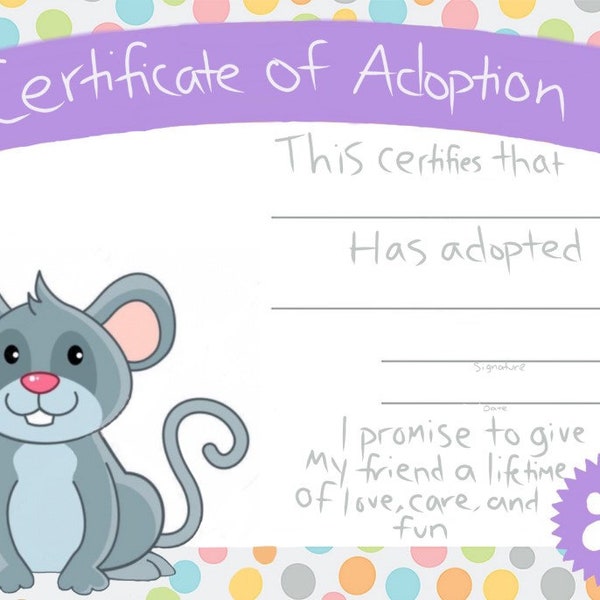 Printable Pet Adoption Certificate