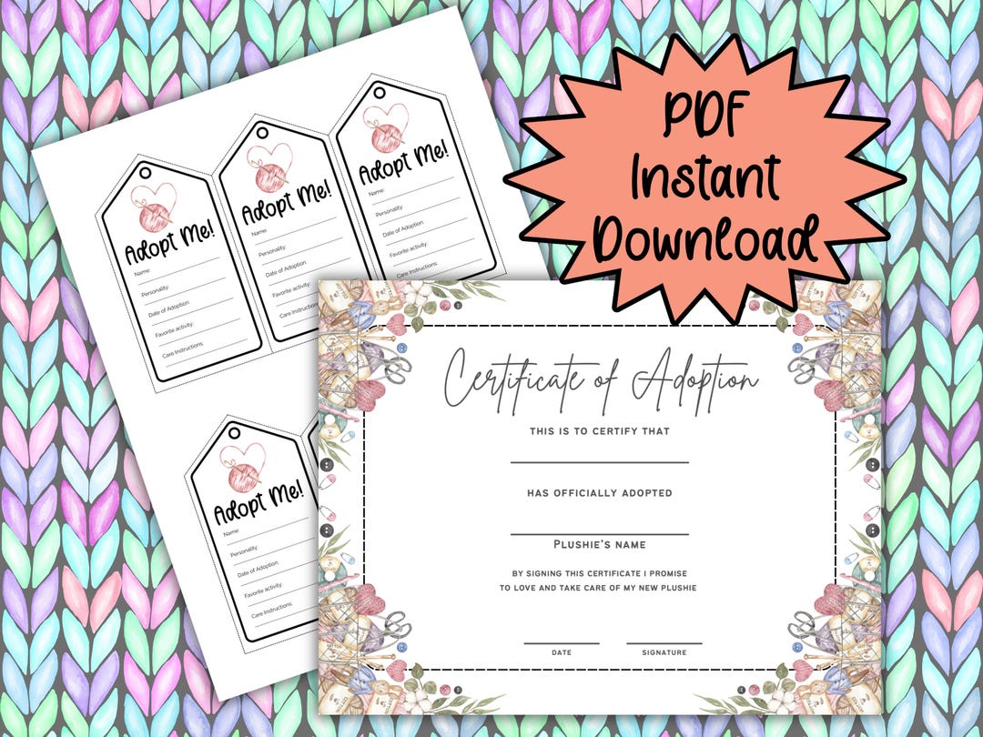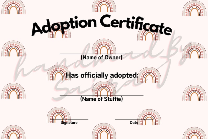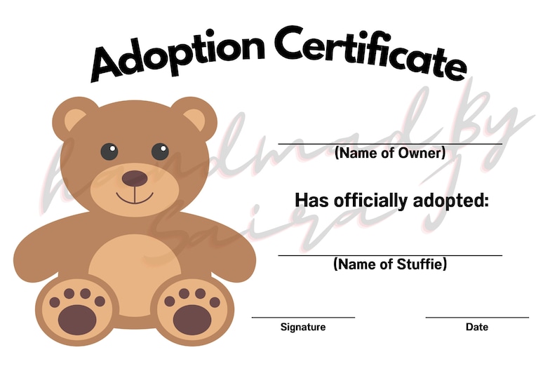 Stuffie Adoption Certificates Etsy