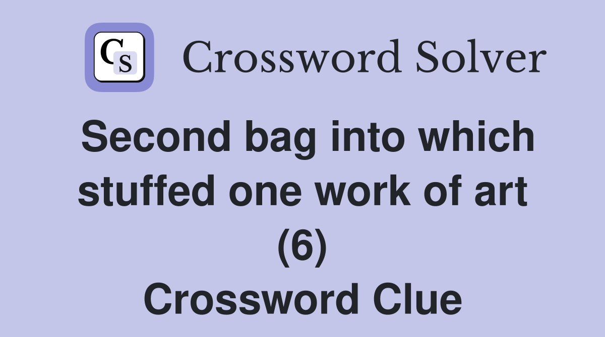 Second bag into which stuffed one work of art (6) Crossword Clue