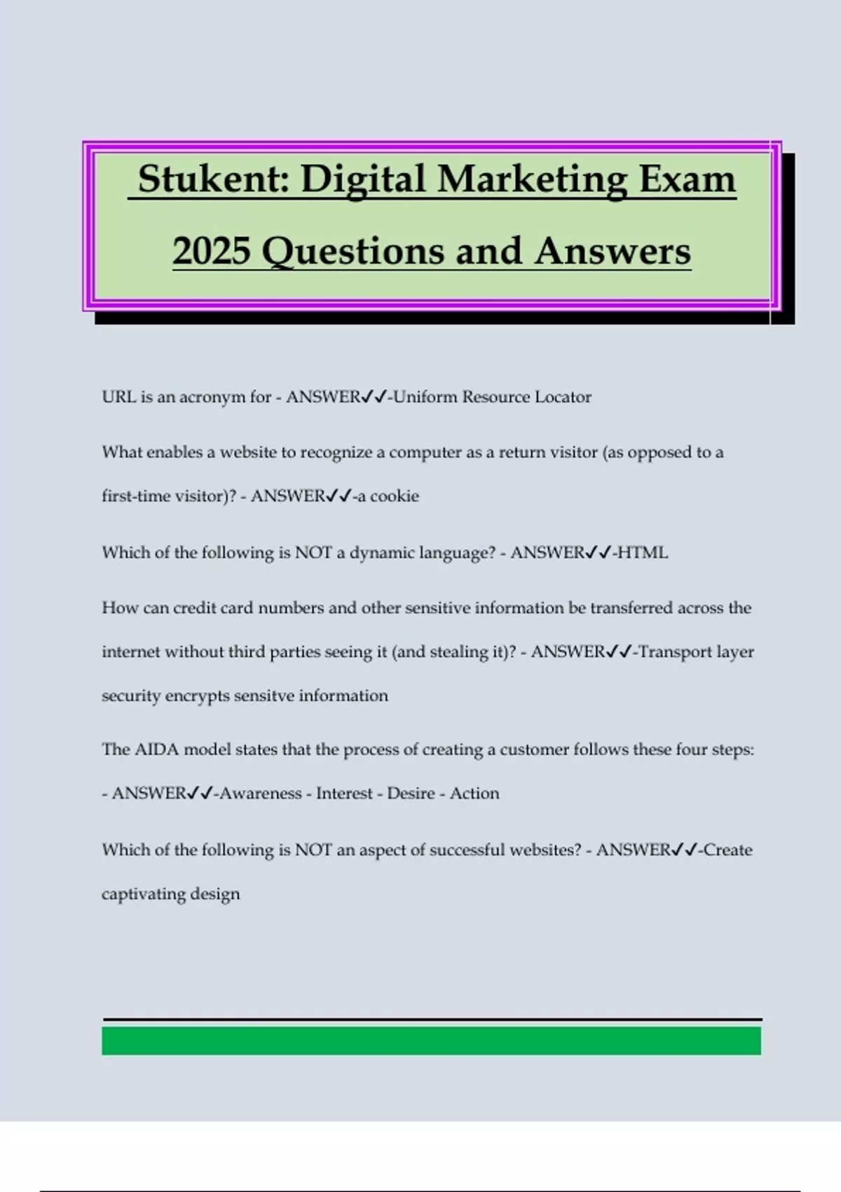 DIGITAL MARKETING STUKENT TEST QUESTIONS WITH VERIFIED ANSWERS Exams