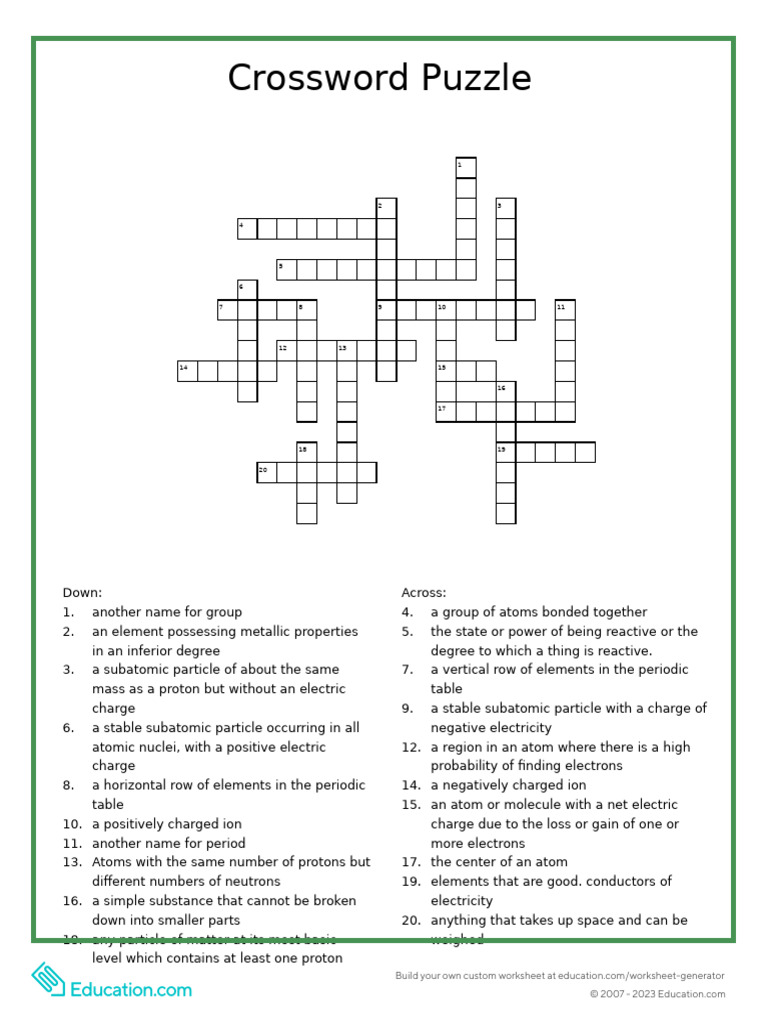 Crossword Puzzle PDF Atoms Electric Charge