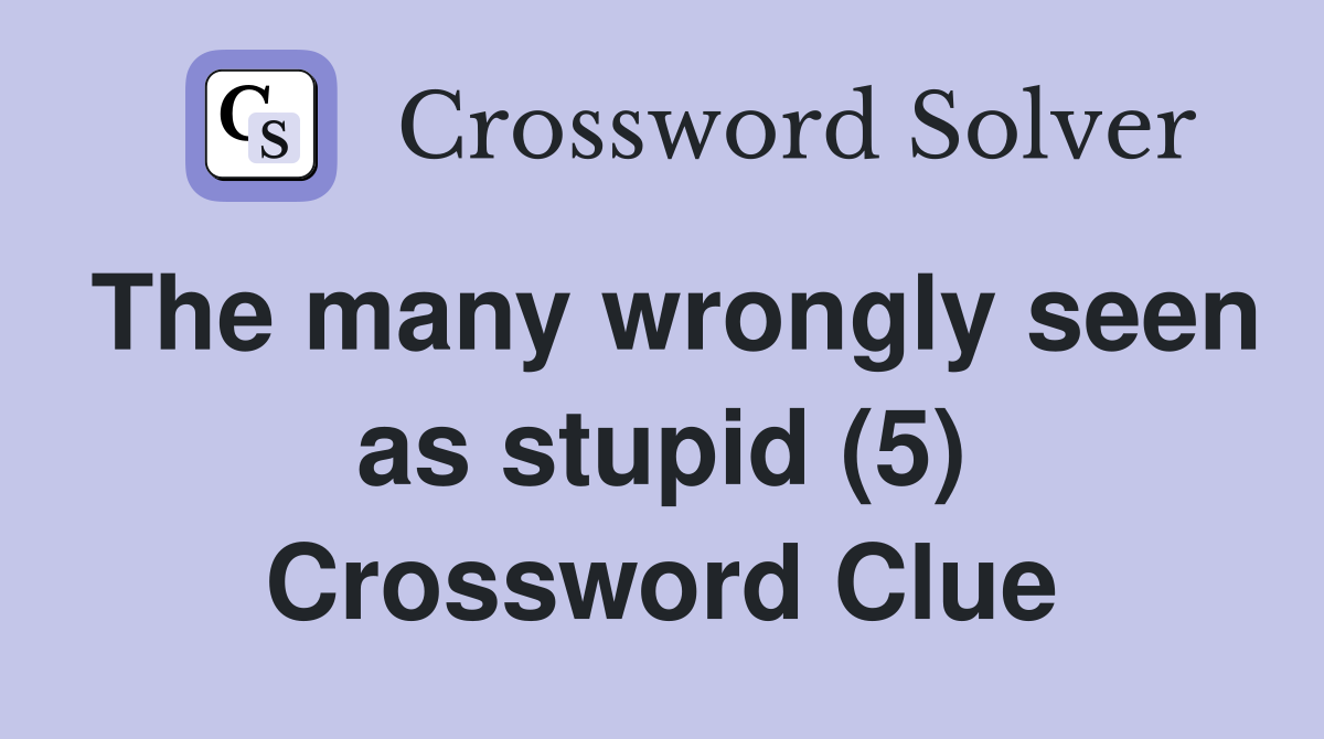 The many wrongly seen as stupid (5) Crossword Clue Answers