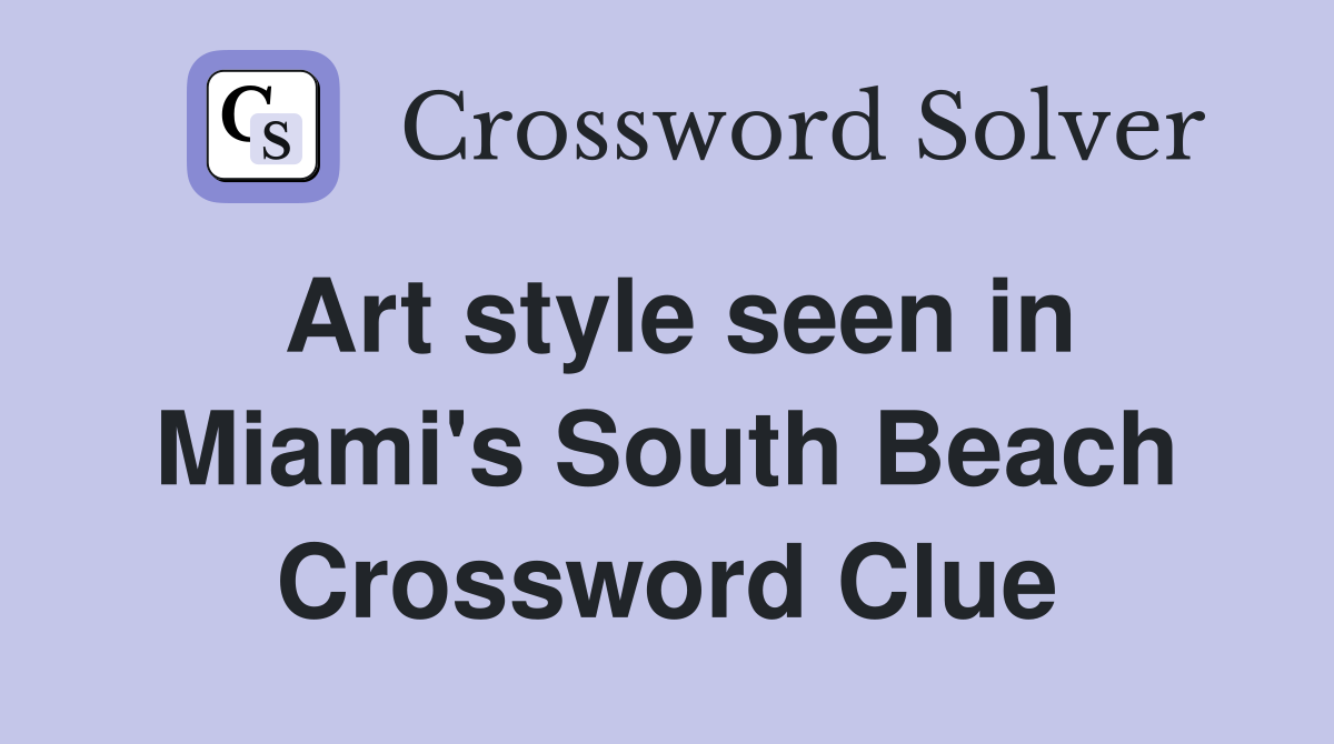 Art style seen in Miami #39 s South Beach Crossword Clue Answers