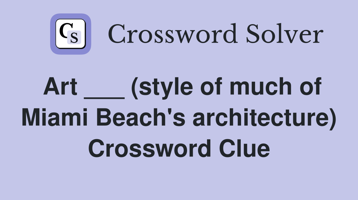 Art (style of much of Miami Beach #39 s architecture) Crossword Clue