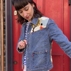 Denim Jacket Reworked With Vintage French Needlepoint Etsy