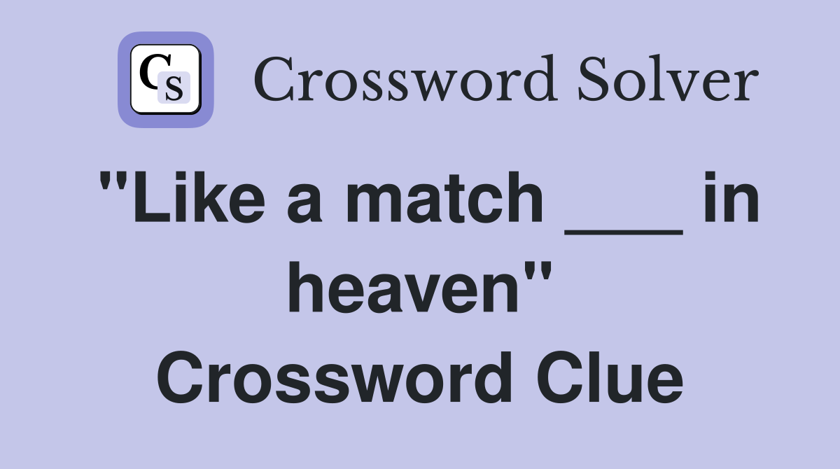 quot Like a match in heaven quot Crossword Clue Answers Crossword Solver