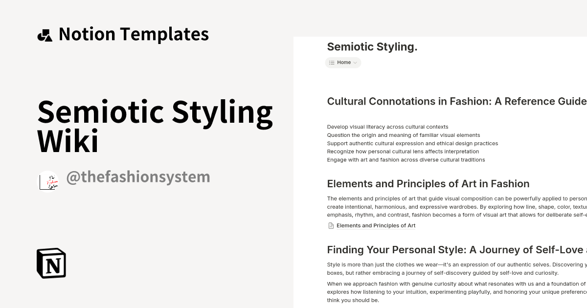 Semiotic Styling Wiki Template by The Fashion System Notion Marketplace