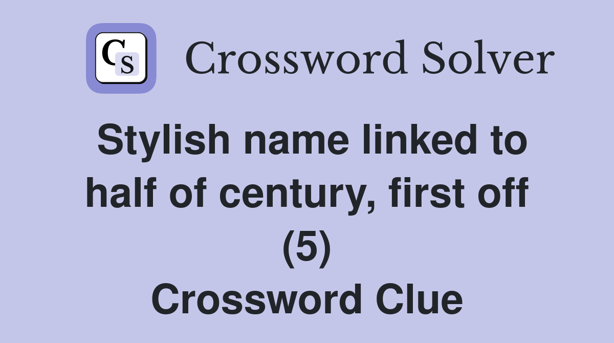 Stylish name linked to half of century first off (5) Crossword Clue
