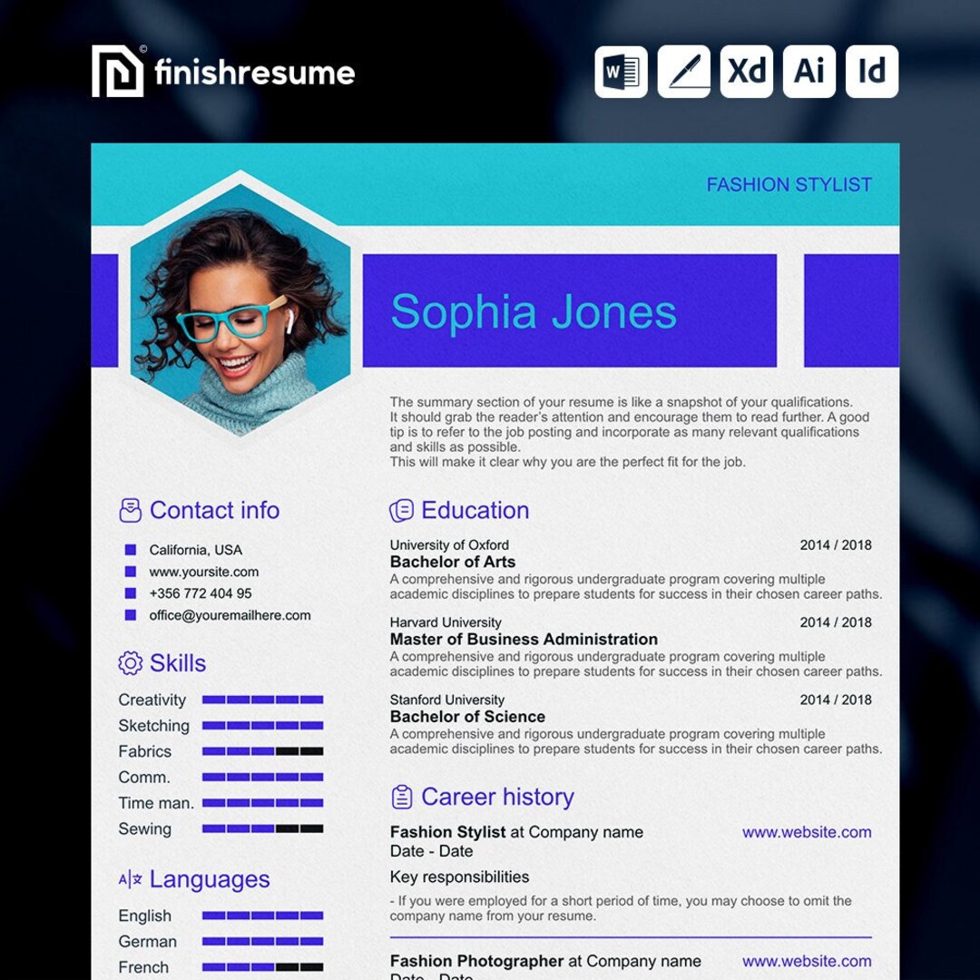Fashion Stylist Resume Template for Microsoft Word Apple Pages More
