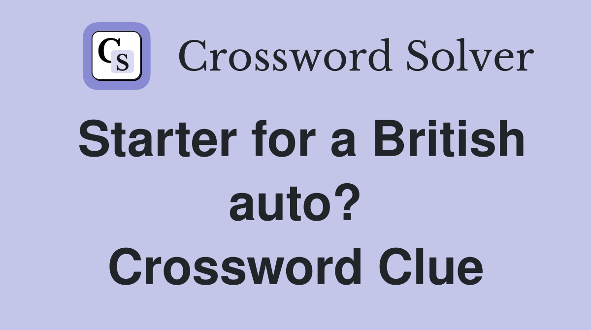 Starter for a British auto? Crossword Clue Answers Crossword Solver