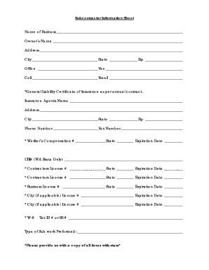 Subcontractor Information Sheet Fill and Sign Printable Template Online