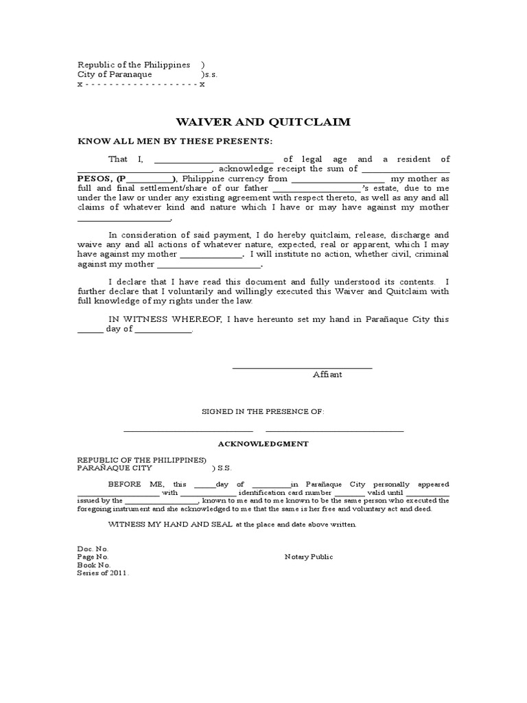 Waiver and Quitclaim: Know All Men by These Presents PDF