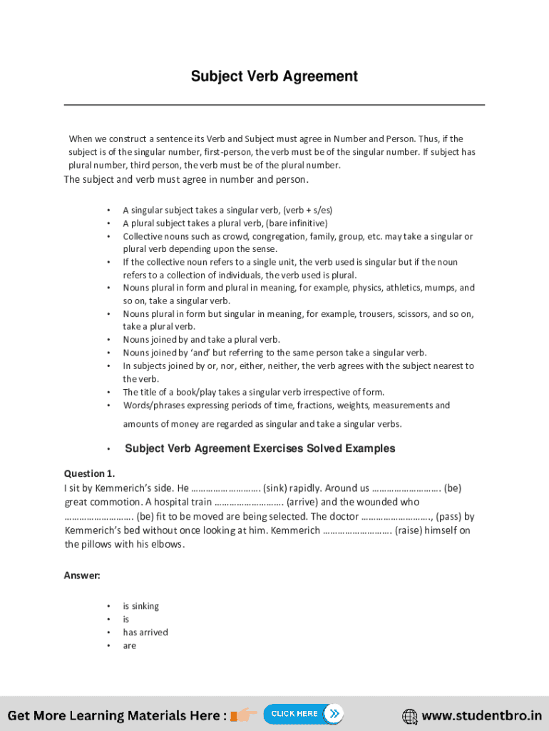Subject Verb Agreement Worksheets and Exercises • 7ESL