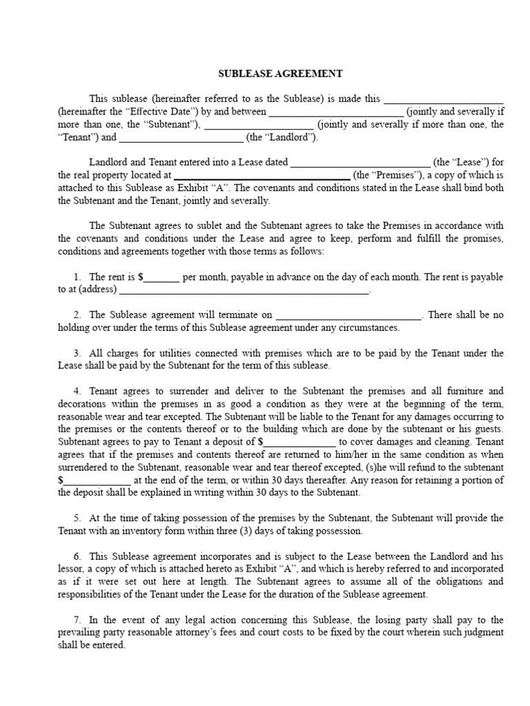 Printable Templates For Subleasing
