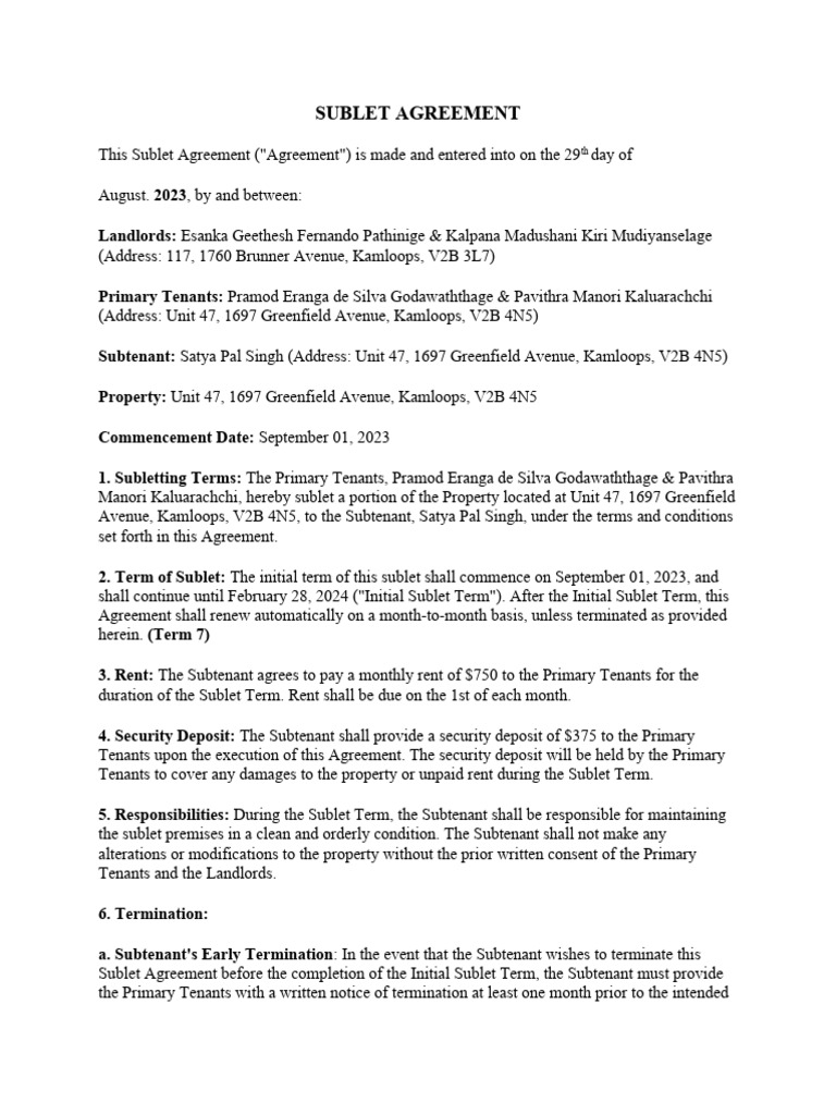 Sublet Agreement PDF