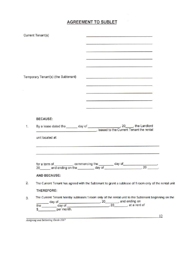 Ontario Sublet Agreement Template Printable And Enjoyable Learning