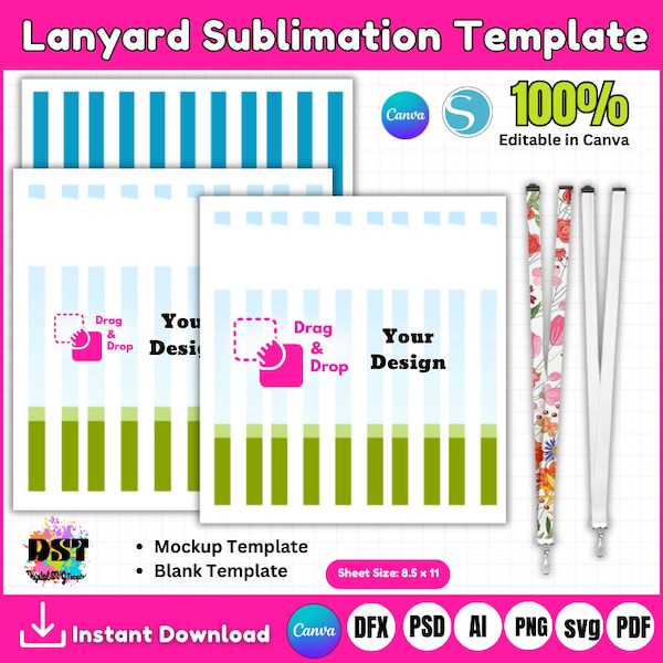 Lanyard Sublimation Template Lanyard SVG Canva Template for